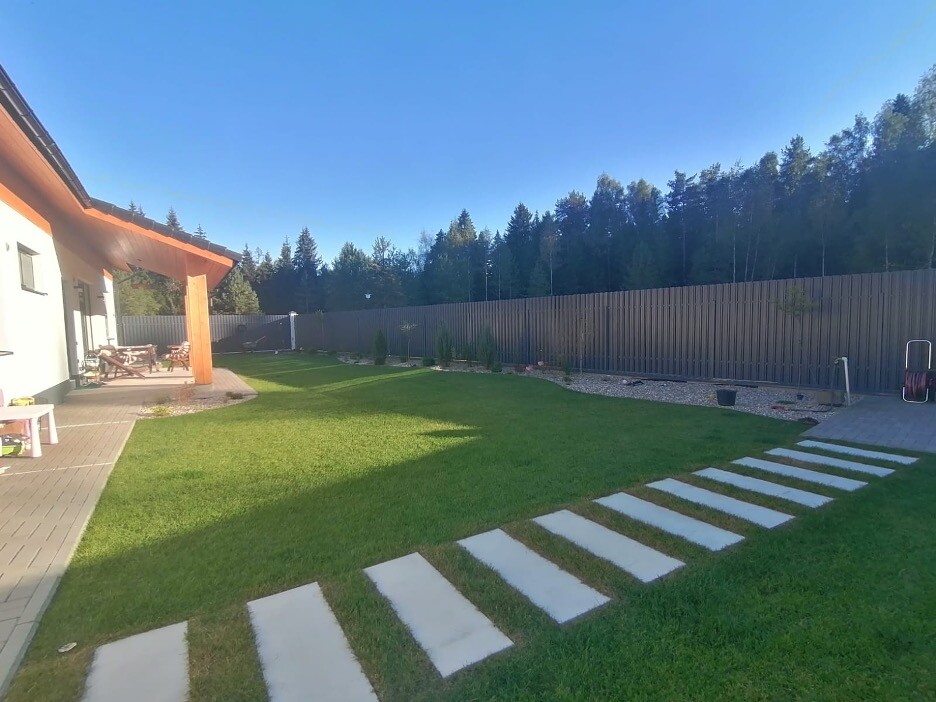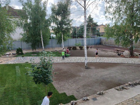 Провели работу по укладке газоне "с нуля". Земляные работы, выравнивание площадки, подбор и посадка газона.