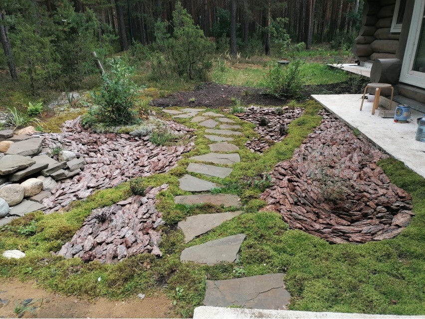 Подготовка к укладке, расчет объема плитняка, защита газона от оползня